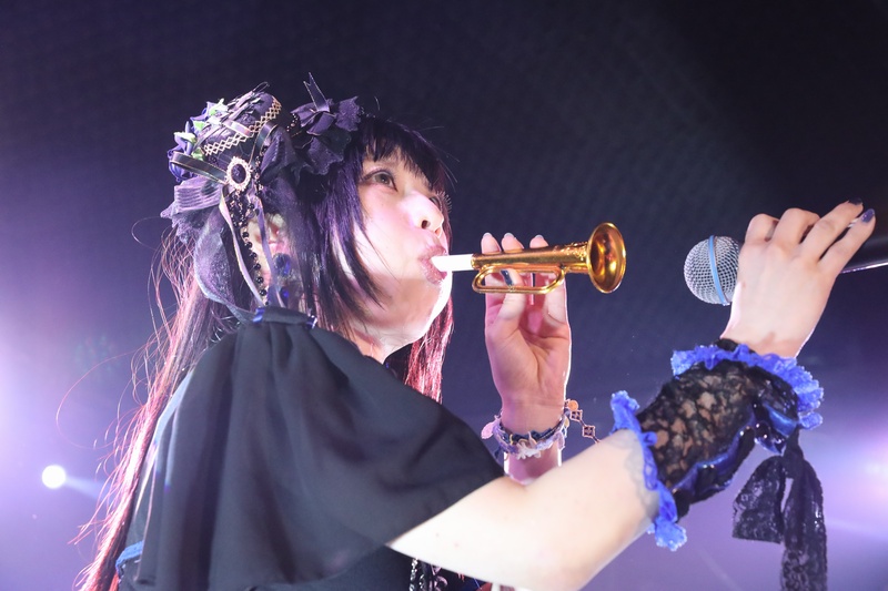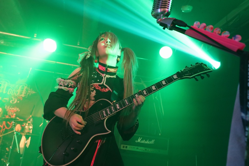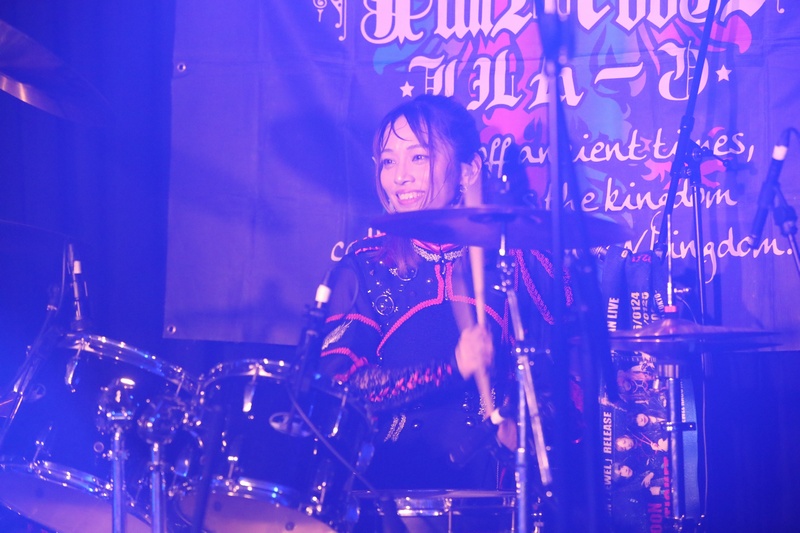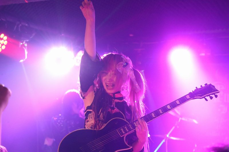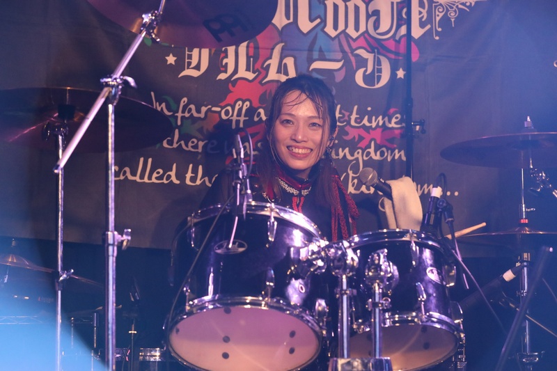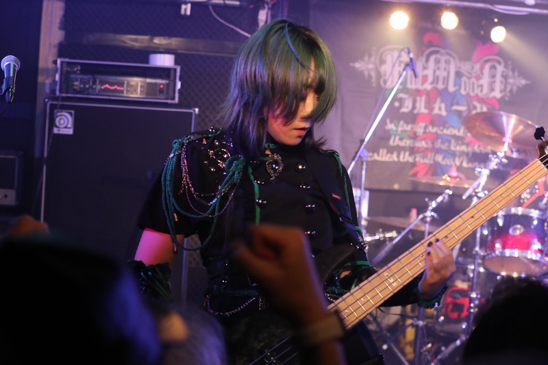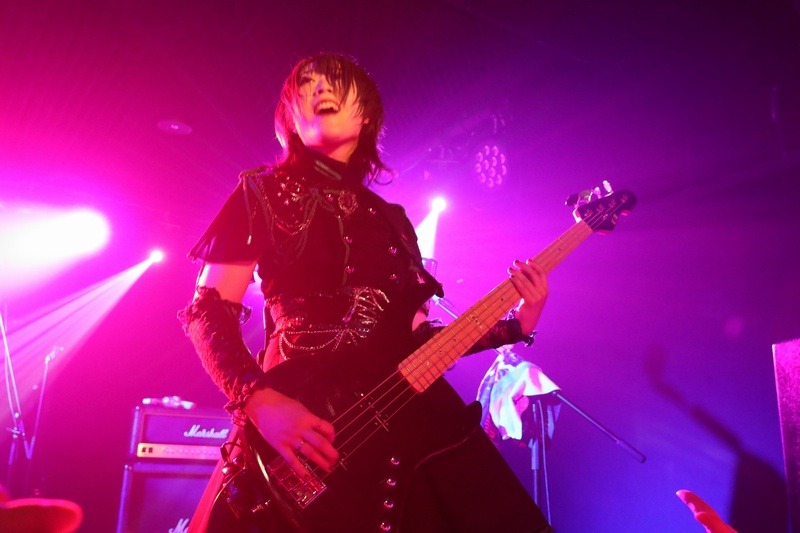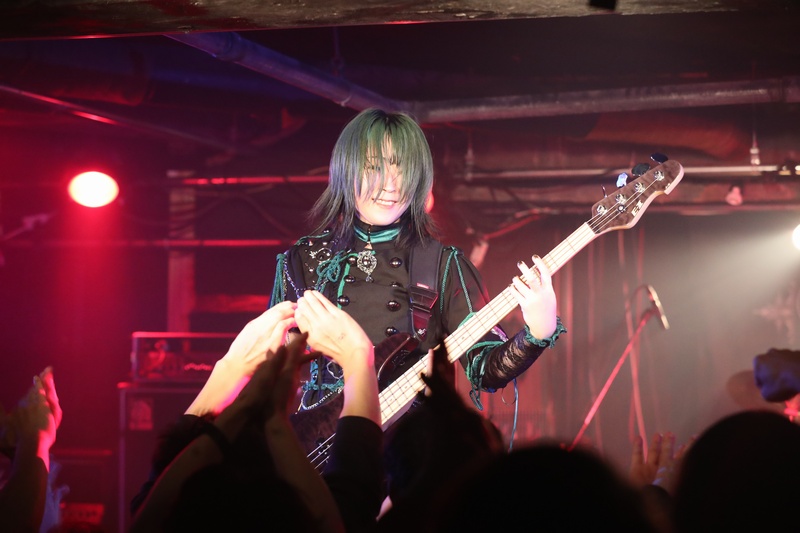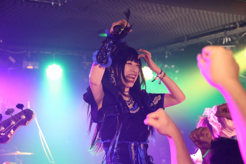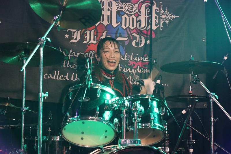 全身の力を込め大音量でリズムを刻み続ける Dr.葵、ハイスピードで聴けるスネアの響きが心地良い。激しいアクションを取りながら、楽曲の基盤とギターとのアンサンブルを弾きこなす Ba.りん。デスボイス、シャウトも映える Gt.えれん。この日もソロ、アクション、デスコーラスの大団円の立ち回り。そしてファンに会いたい、楽しんでもらいたいと、体調が万全ではない状態で全力を尽くす Vo.ねね。「青い月」を経て、会場のファンにメッセージを届ける。