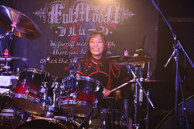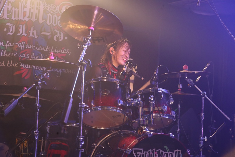 ここで名古屋に続いて楽器隊によるソロセクション。Dr.葵の生音のデカさ、Ba.りんの凶悪に歪んだサウンド、センターで存在感を放つ Gt.えれん。それぞれのメンバーのキャラクターが立った FullMooN。どんな楽曲でも彼女達が演奏すれば FullMooNのサウンドになる。そんなサウンドを楽しんだ後は「世界に一つだけのパーリナイツ」、「Reality」。