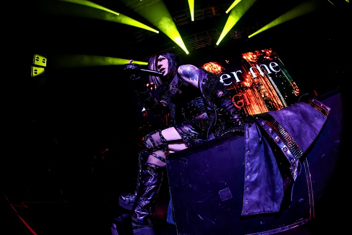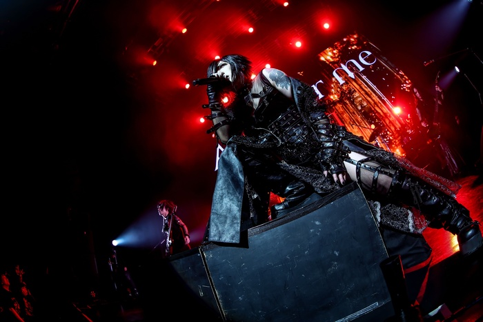 後半戦は「GORE」「Fea[the]r」「屍の王者」と、闇の力が加速し続ける。「アンプサイ」「Unknown」、彼のソロでのキャリアを象徴する楽曲群が連なり、ソロの始まりの曲「Corvinus」はまるで闇に差し込む一筋の光のようだ。そしてここでASAGIの獣のような咆哮がZEPP SHINJUKUに轟く。Dの無期限活動休止以来、初の披露となる「鬨の声」が披露されたのだ。観客のテンションもクライマックス、ステージとひとつになった熱狂が伝わってくる。