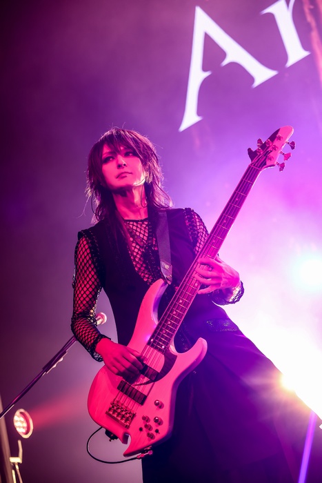 アンコールの和の曲ではゲストである燿(摩天楼オペラ/Ba.)が加わり、「魍魎 – MIZUHA-」の幻想的なイントロからASAGIの声が水のように広がる。続く「物の怪草子」「狐華火」と、妖艶で古風な世界観の連鎖。燿の低音が支えるリズムは、曲に新たな重厚さを与え、ASAGIの歌唱に妖しい艶を乗せていた。会場は息を潜め、まるで古い物語に召喚されたような没入感に包まれる。